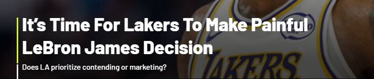 交易詹姆斯对湖人队来说并非易事。他们需要暂时抛开詹姆斯带来的商业价值,清醒地为球队做出最有利于篮球层面的决定。